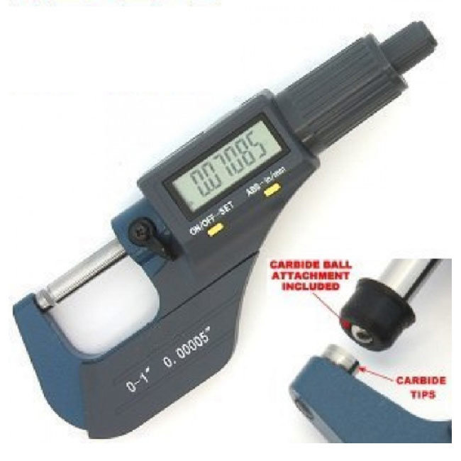 Crisp, clear, easy-to-read LCD display, accurate to 0.00016”. Hardened and ground spindle with carbide anvil ensure durability and accuracy. Comes in a padded case with adjustment wrench, instructions booklet and extra battery.