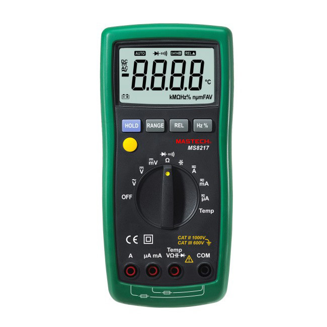 The meter is able to measure AC/DC voltage, current, resistance, capacitance, frequency, temperature, diode, hFE, continuity buzzer. Features: Display: 2000 Counts Data hold: Auto power off: Diode test: Transistor: Continuity