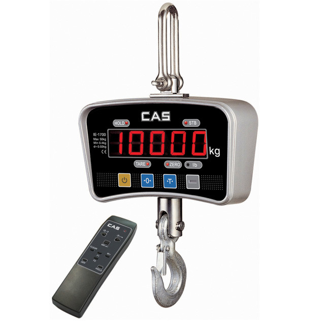 CAS IE700 is hanging/crane Scale. it’s an electronic digital weighing hanging scale with shackles and hook. It offers easy portability and transportation and clear weight values can be checked with high –intensity large size LED Display.